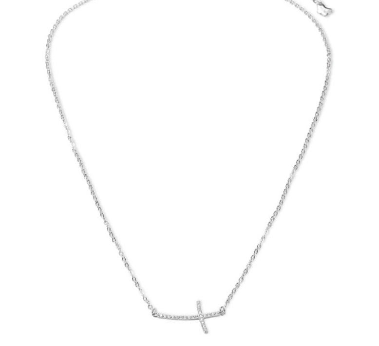 Veronica is a delicate chain necklace with a sideways cross to honor the manner in which Christ carried the cross. The gold (10 kt plated over sterling silver) version can be worn on the smooth or etched side for alternating looks; it is adjustable from 15-18 inches. The sterling silver has a slight sparkle and is a fixed length of 16 inches. When overwhelmed in difficult situations, turn to the Lord knowing He longs to sweeten your life with His great joy.