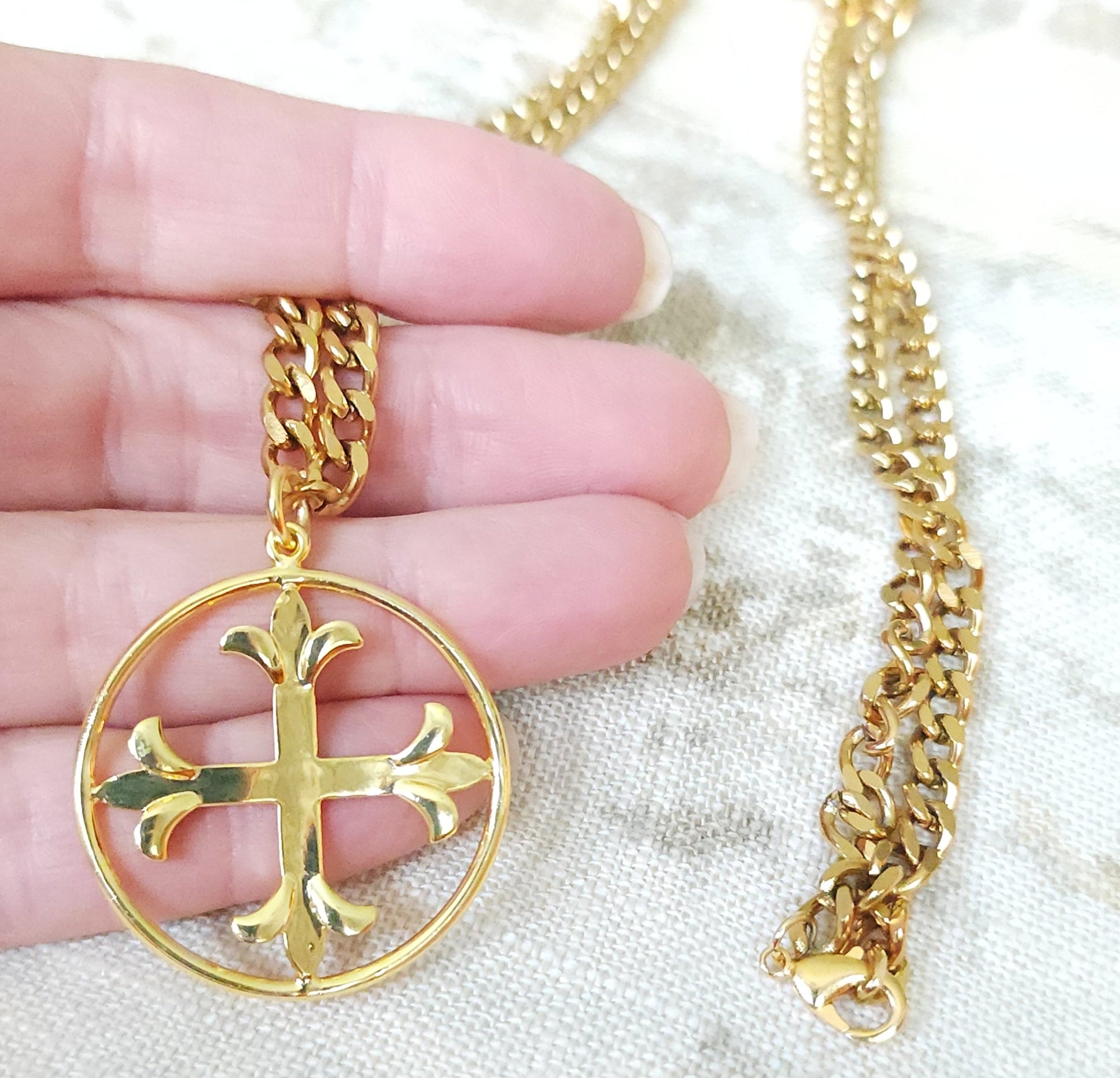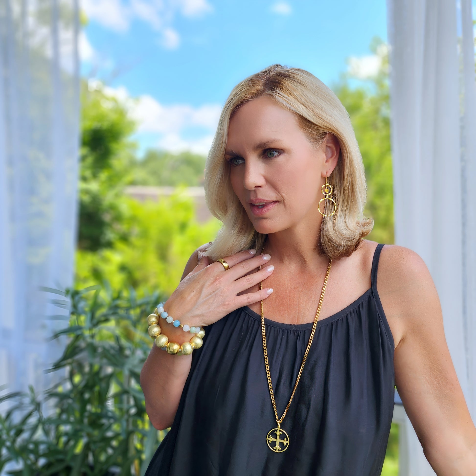 Enhance any outfit with this stylish and versatile Prosper Necklace, featuring a 21K gold finish and our exclusive CB signature cross circle charm. Wear it short or long with the 32 inch twisted chain. A must-have creation only available at CB Jewelry!