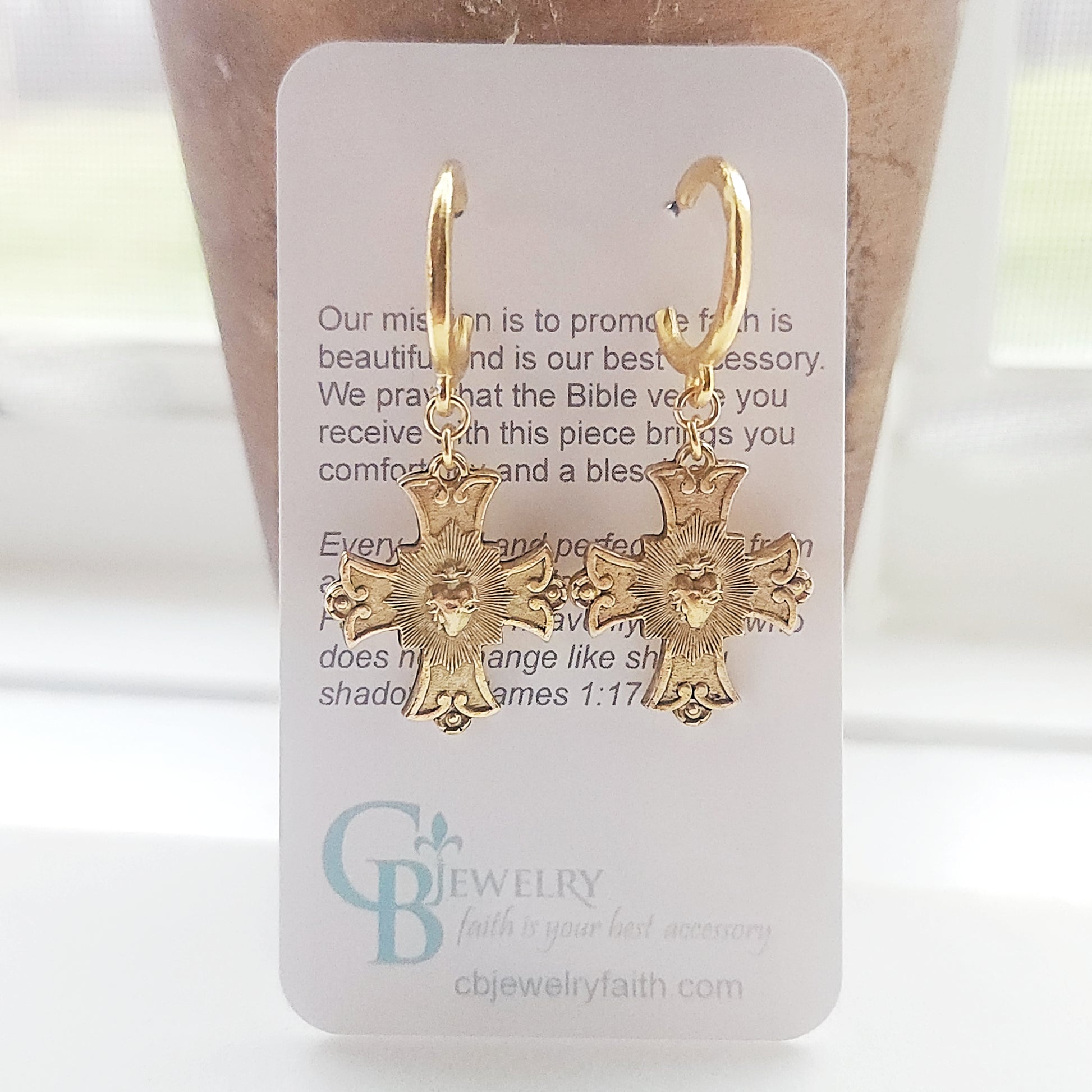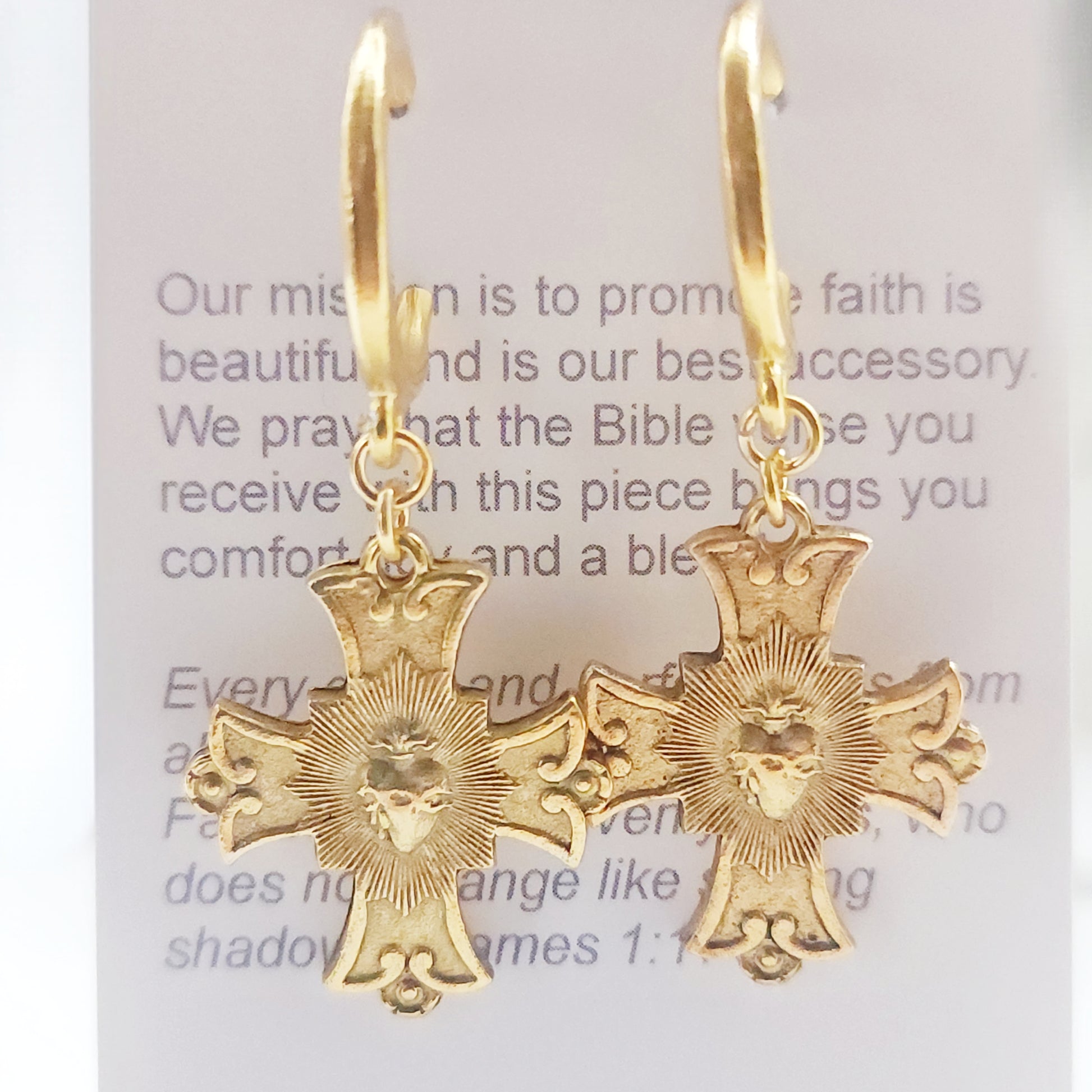 These exquisite post earringsare truly one of a kind, featuring the Sacred Heart of Jesus Cross that radiates love and compassion, making these gems not only beautiful but deeply meaningful.